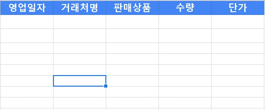 이제 거래명세서의 첫번째 행을 써줍니다. 데이터의 라벨 부분을 복붙하면 됩니다.