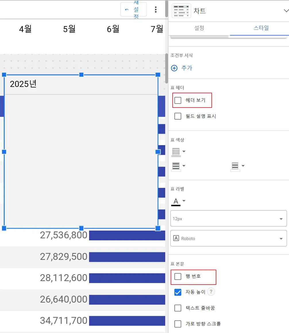3. 표 차트 스타일(커스텀 헤더)