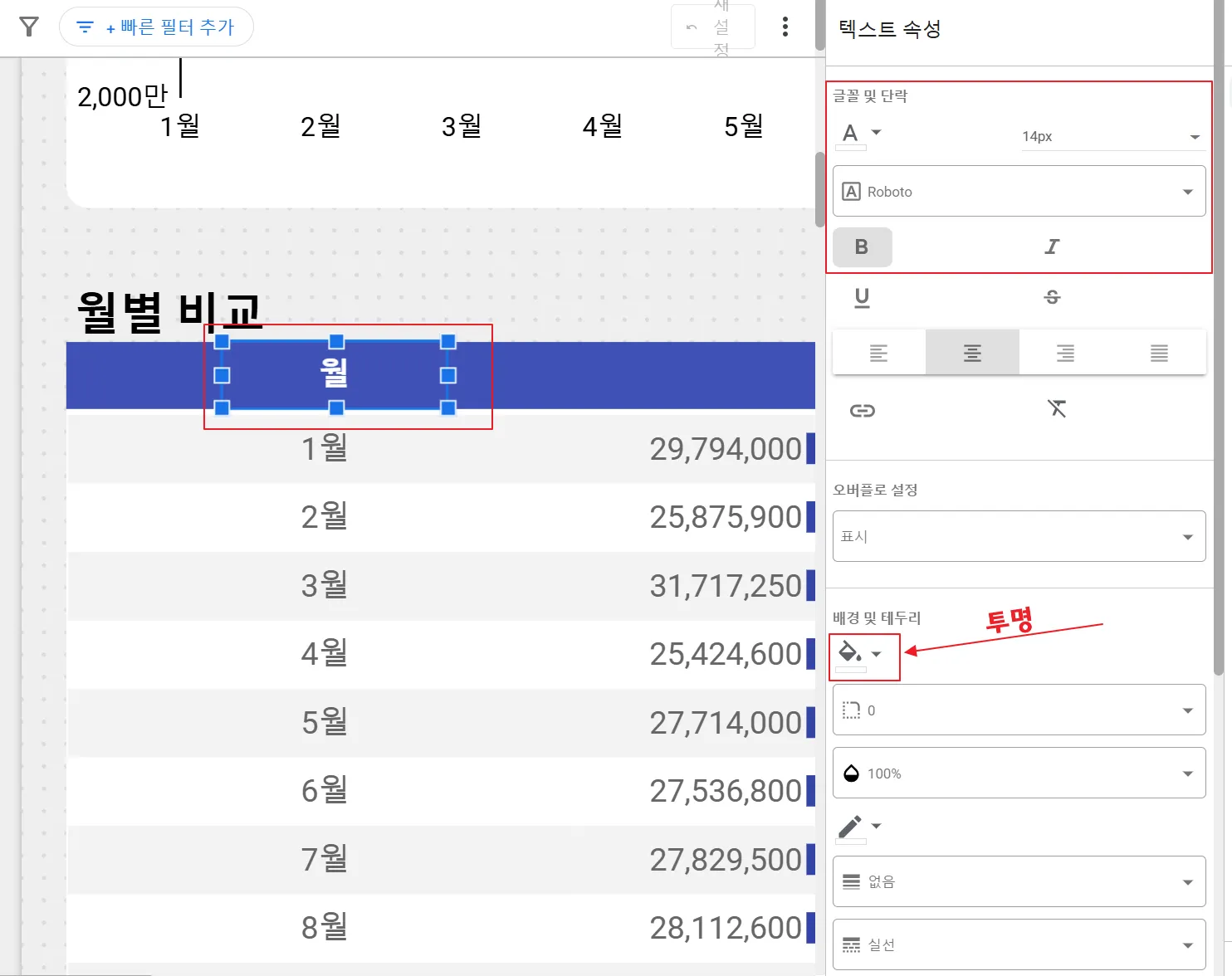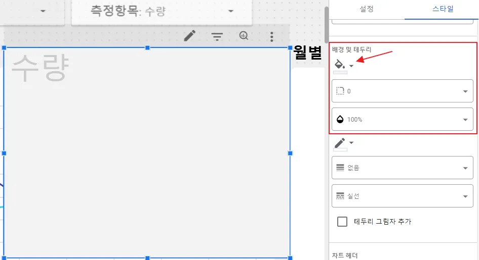 ‘배경 및 테두리’를 투명으로 설정