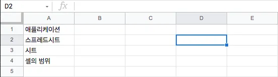 getRange() 의 괄호 안에 "D2" 라고 쓰는 방식을 A1 Notation (노테이션) 이라고 합니다.
