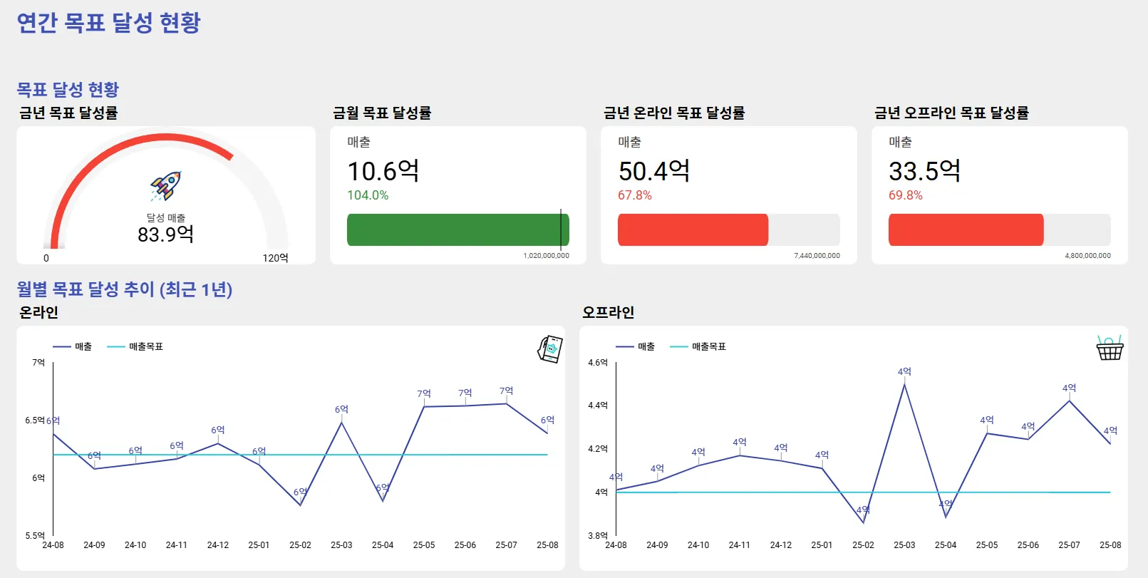 또한, 실무자가 운영 및 상세 분석에 사용하는 대시보드와 경영진이 핵심 성과 지표(KPI)를 파악하는 대시보드를 구별하여 구축함으로써, 사용자가 필요에 맞는 정보에만 집중할 수 있도록 정보 접근 체계를 분리하는 것이 중요했습니다.
