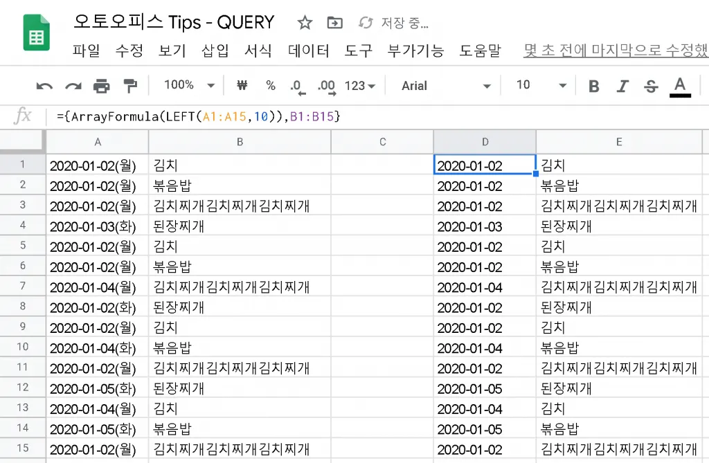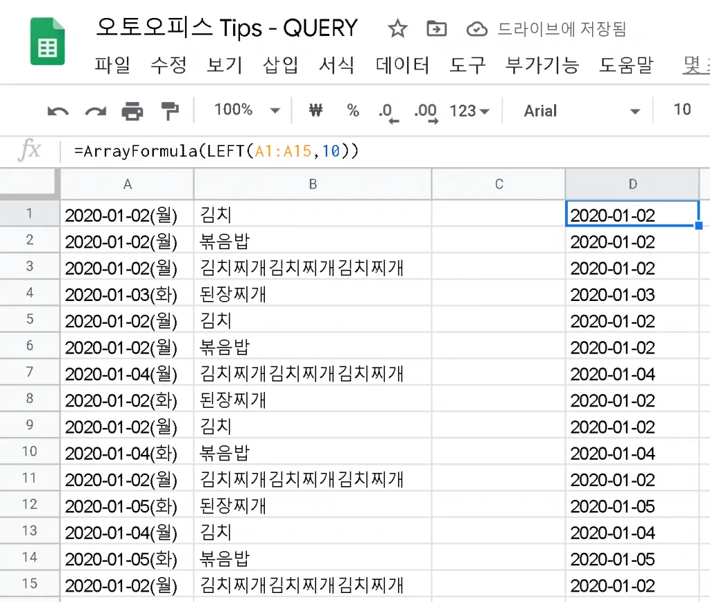이제 ARRAYFORMULA 로 범위에 적용합니다.