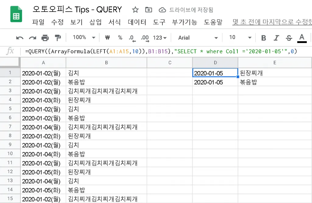 쿼리를 사용해서 2020-01-05 날짜만 필터링해보겠습니다.