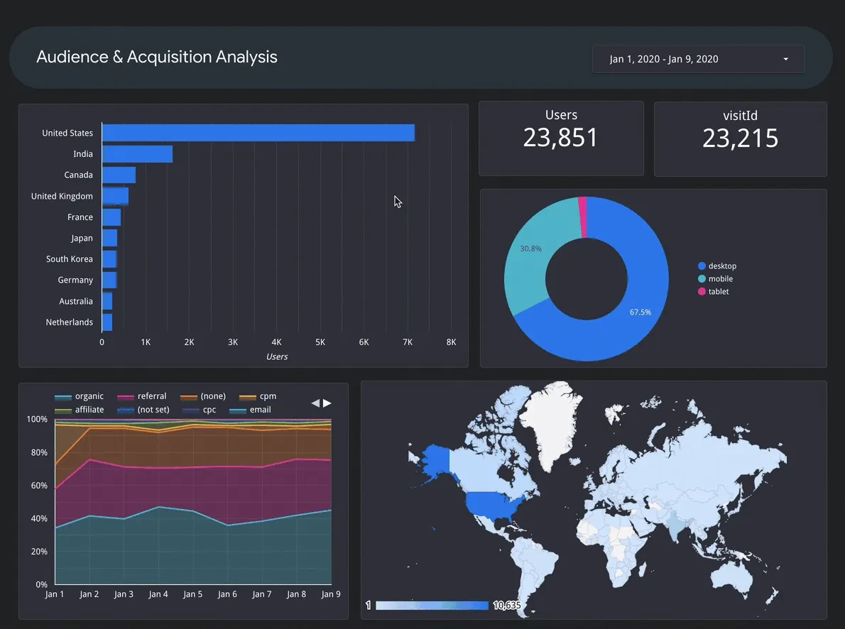 You can use Google Sheet, AppSheet, MySql, PostgreSQL, Google BigQuery and etc. as database for Looker Studio. And it is easy to change the perspective of analysis once it’s set up.