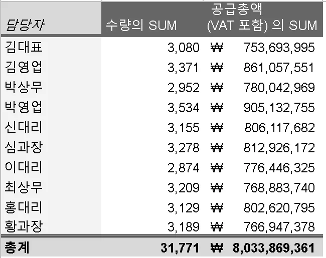 목적을 분명히 정하지 않고 피벗 테이블을 만들다보면 단지 숫자의 합과 나열일 뿐입니다.