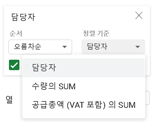 담당자의 정렬방법을 매입액 큰 순서대로 바꿔주려면 어떻게 해야할까요?
