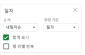 여기서 공급 총액 (VAT 포함) 의 SUM 을 선택하고, 순서를 내림차순으로 선택합니다.