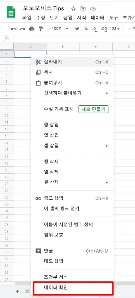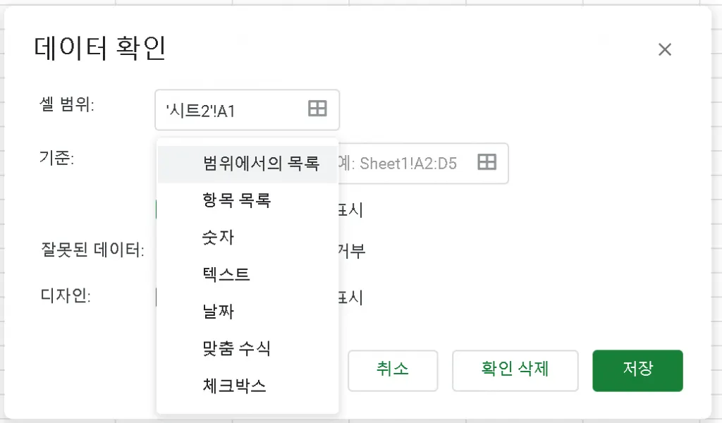구글 시트에서는 "데이터 확인"이라고 부릅니다.