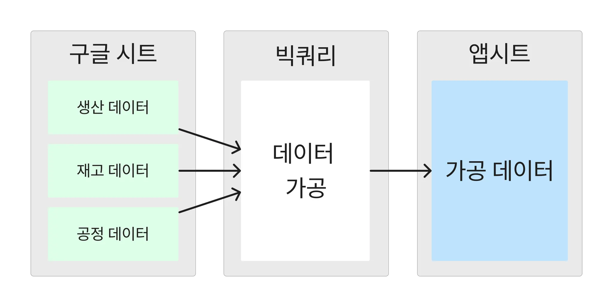 앱시트를 빅쿼리와 연결하여 빅쿼리의 가공된 데이터를 볼 수 있습니다.