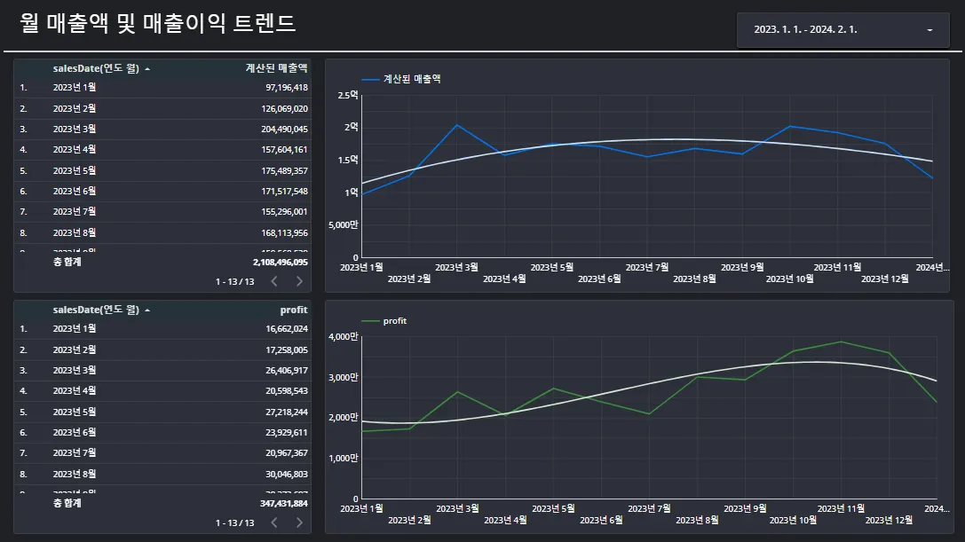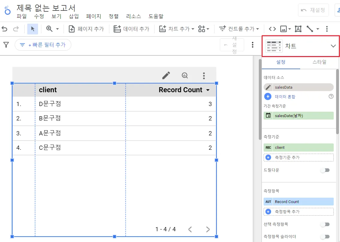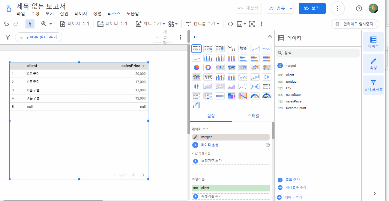 이제, 2022년 판매데이터, 2023 판매데이터를 통합한 ‘merged’ 테이블을 루커 스튜디오로 불러와서 데이터를 분석해보겠습니다.