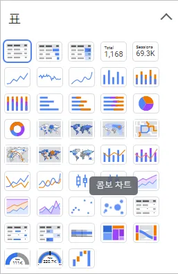 데이터를 불러왔으니, 필요에 맞게 차트를 그려볼까요? 우측 상단 빨간 박스 안 차트 버튼을 클릭하면 다양한 차트를 볼 수 있습니다.