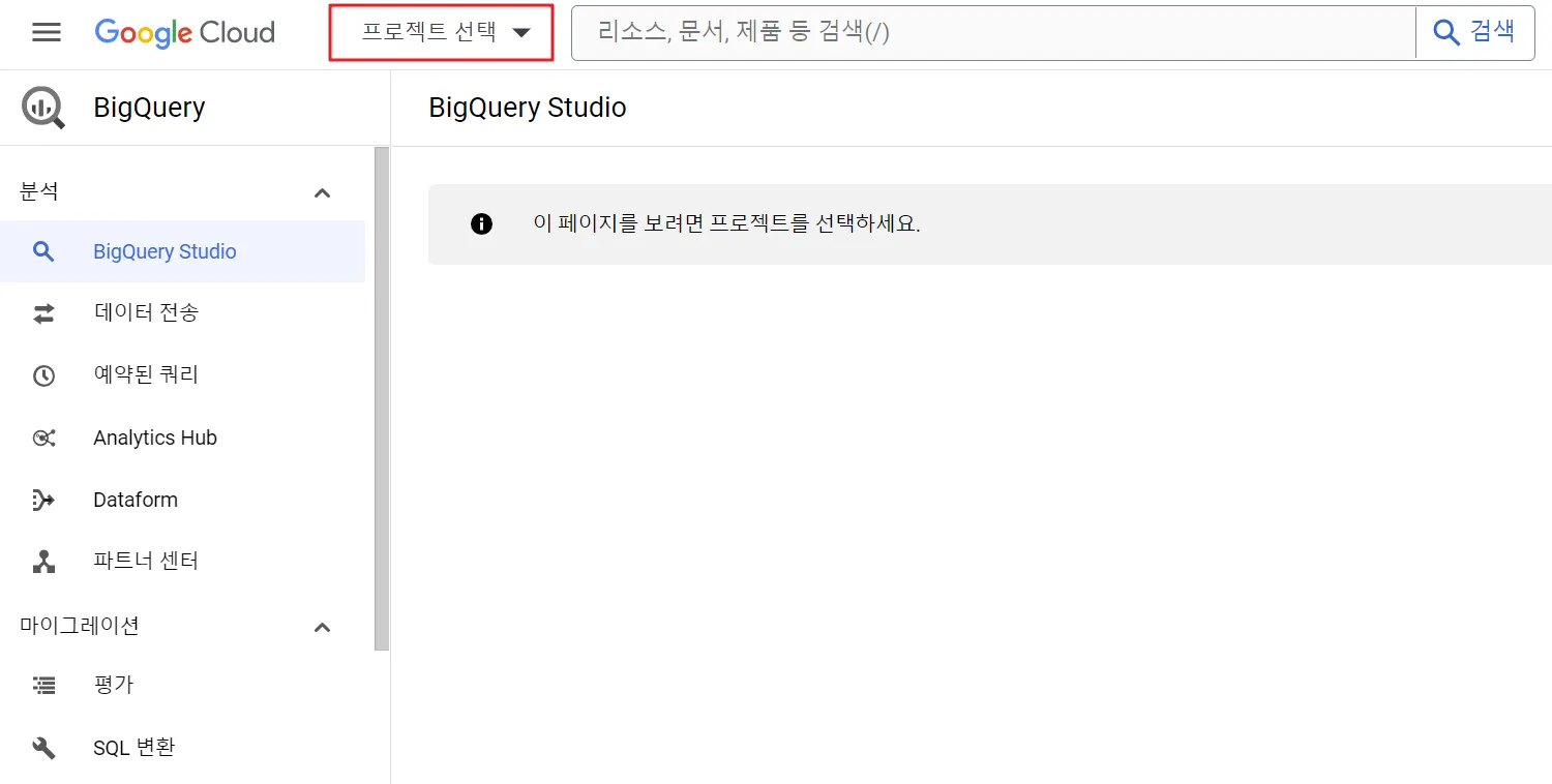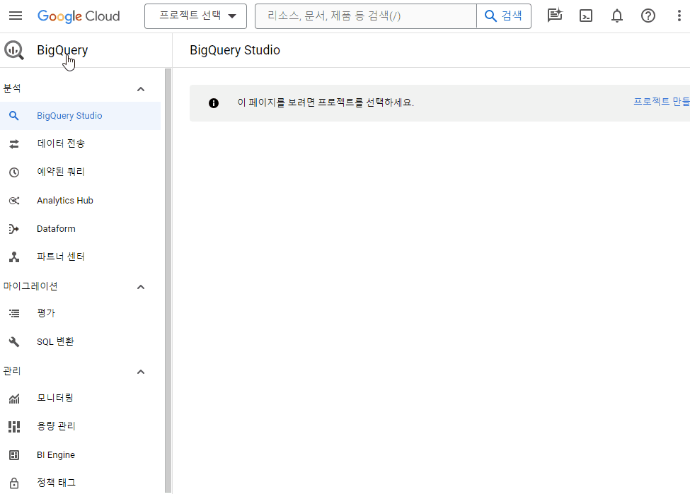 3.1 빅쿼리에 로그인 후, 프로젝트를 생성합니다.