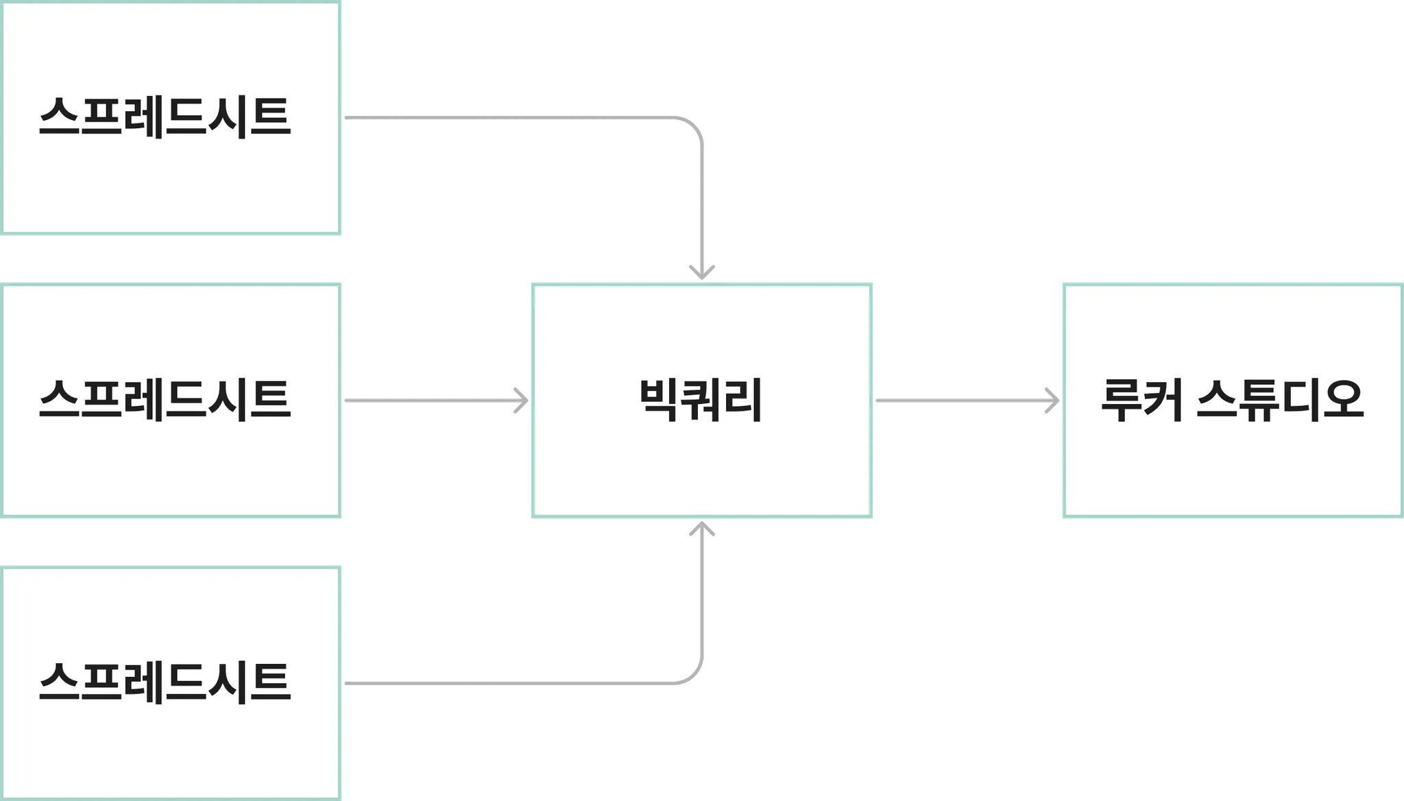 이제 빅쿼리와 루커스튜디오를 통해 스프레드시트의 데이터를 통합 및 시각화하는 방법을 간단히 소개하겠습니다.