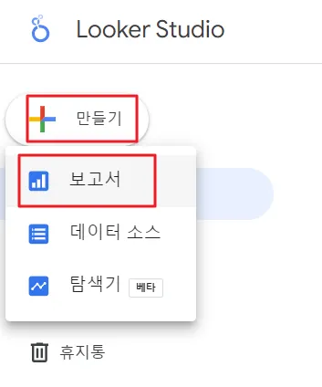 좌측의 메뉴를 통해 새로운 보고서를 생성합니다.