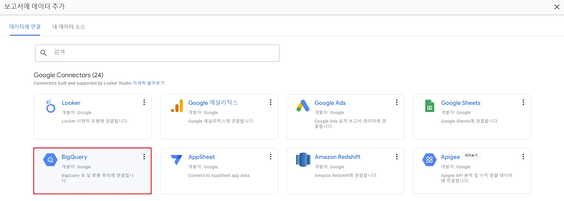 5. 루커 스튜디오에서 빅쿼리 테이블 불러오기