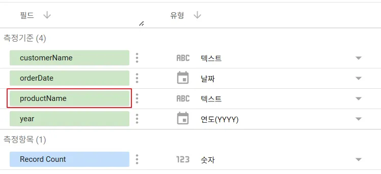 B 데이터 소스 필드명: product → productName 으로 수정