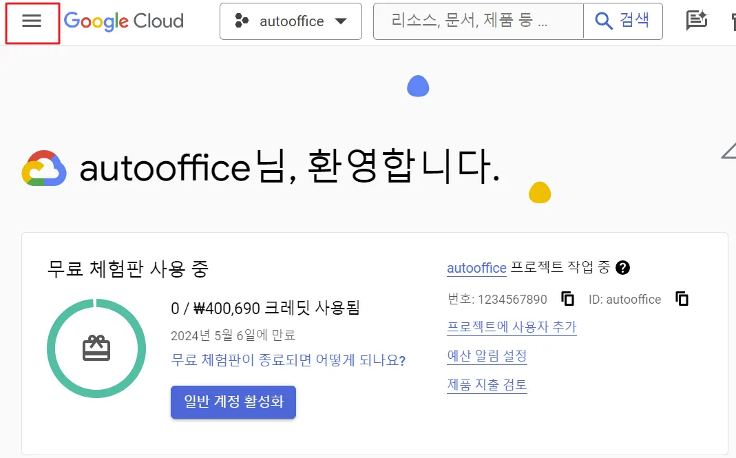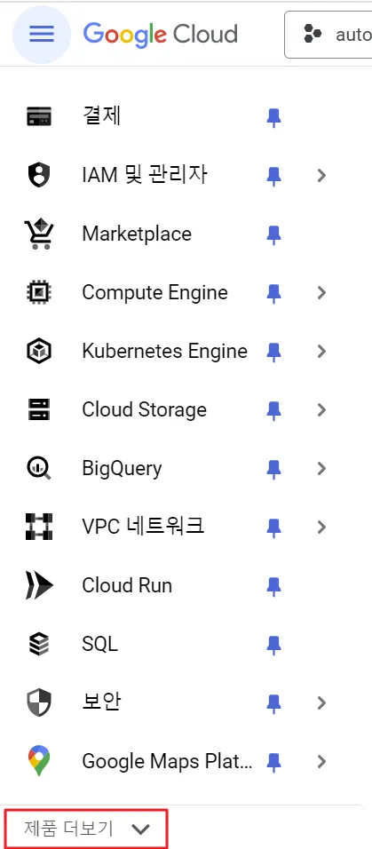 (1) 로그 라우터 메뉴로 이동해보겠습니다. 먼저, 구글 클라우드 메인 페이지에서 좌측 상단의 메뉴를 클릭합니다.