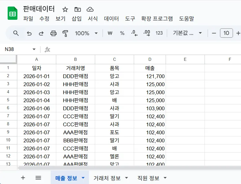 매출 정보 시트