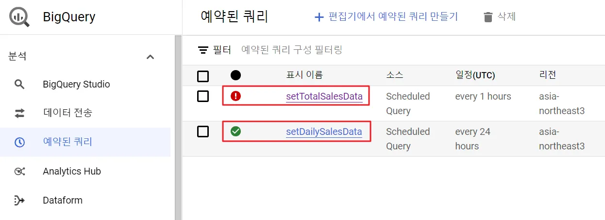 빅쿼리의 ‘쿼리 예약’ 기능을 통해 대신할 수 있습니다.