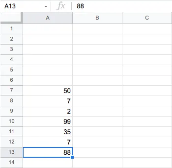 // 7행 1열에 입력된 숫자값이 50보다 높은지 확인합니다.
