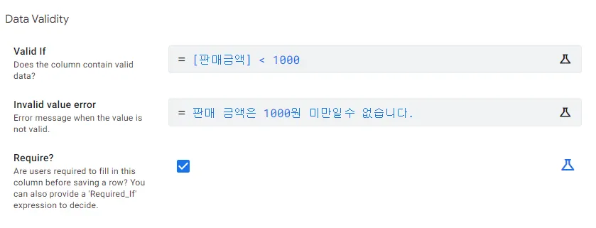 하지만 앱시트를 사용하면 스프레드시트에서 각각의 셀을 선택하여 데이터를 기입할 필요 없이, 사용자가 설정한 조건에 따라 유효성을 검사하고 간편하게 데이터를 삽입하거나 수정할 수 있습니다.